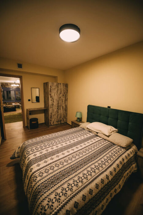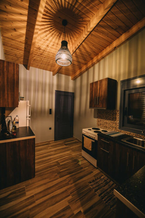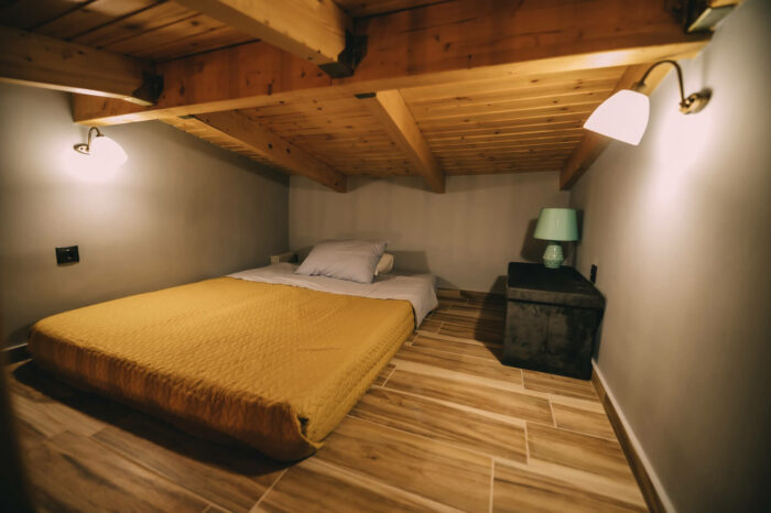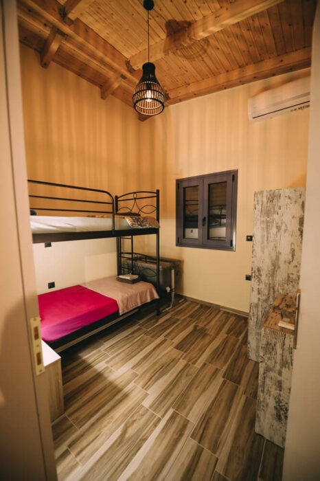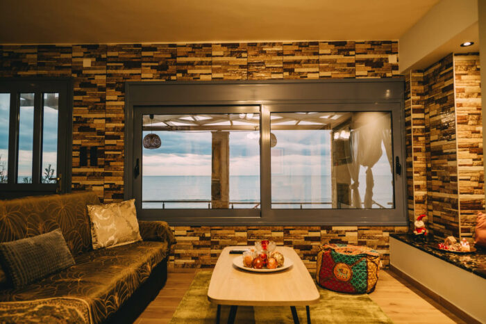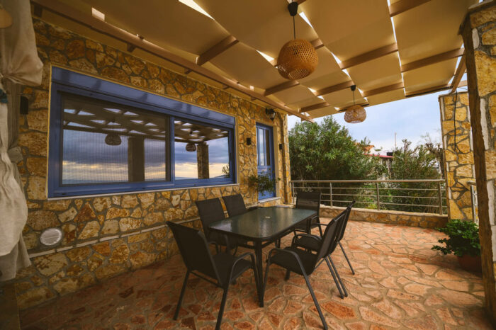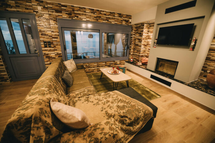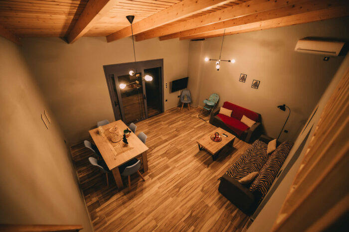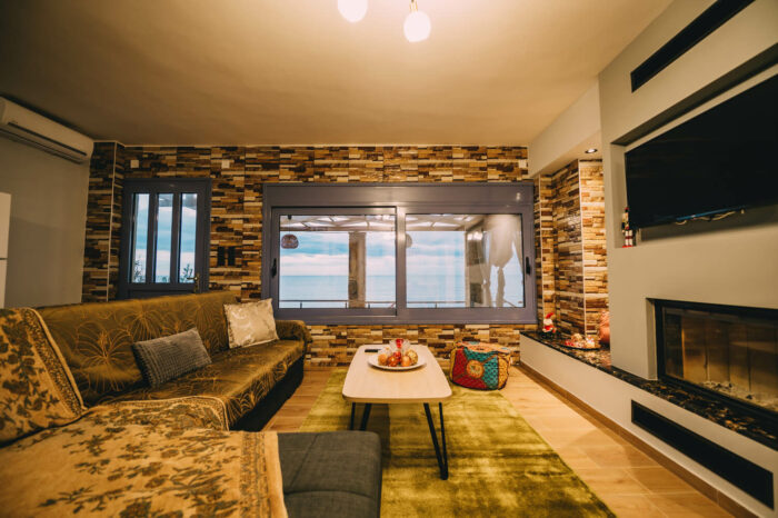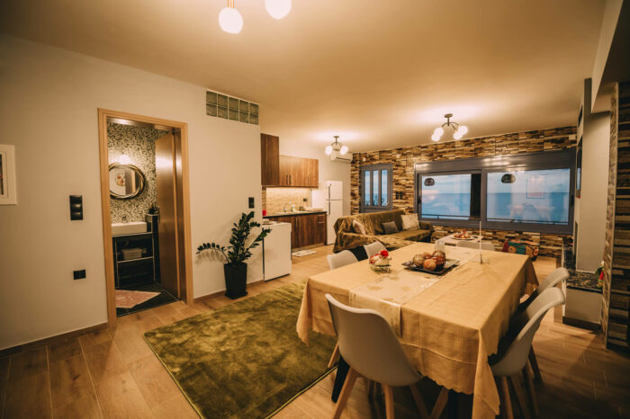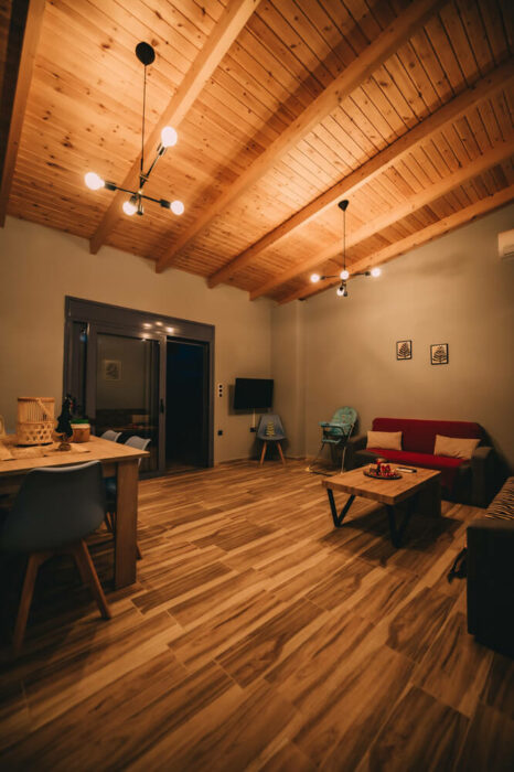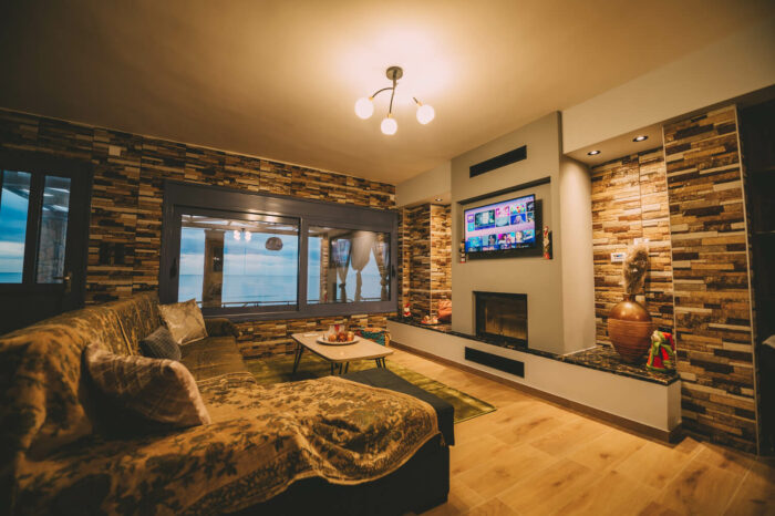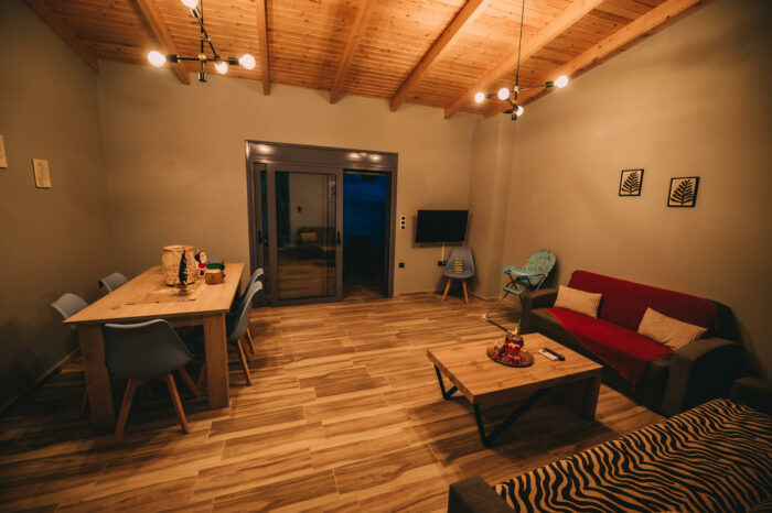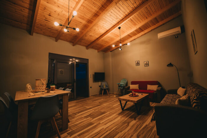 Με δύο υπνοδωμάτια, ενιαία τραπεζαρία – κουζίνα – σαλόνι, με τζάκι για τον χειμώνα, και μια μεγάλη βεράντα!