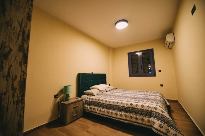 Το ισόγειο διαμέρισμά μας, μ’ ένα πλήρως λειτουργικό περιβάλλον και μοντέρνα διακόσμηση, φιλοξενεί έως 8 άτομα και προτιμάται από οικογένειες με μικρά παιδιά.